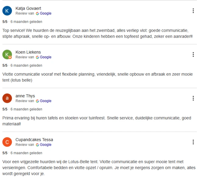 Wij leveren en installeren alles op het afgesproken tijdstip en halen het nadien weer op.